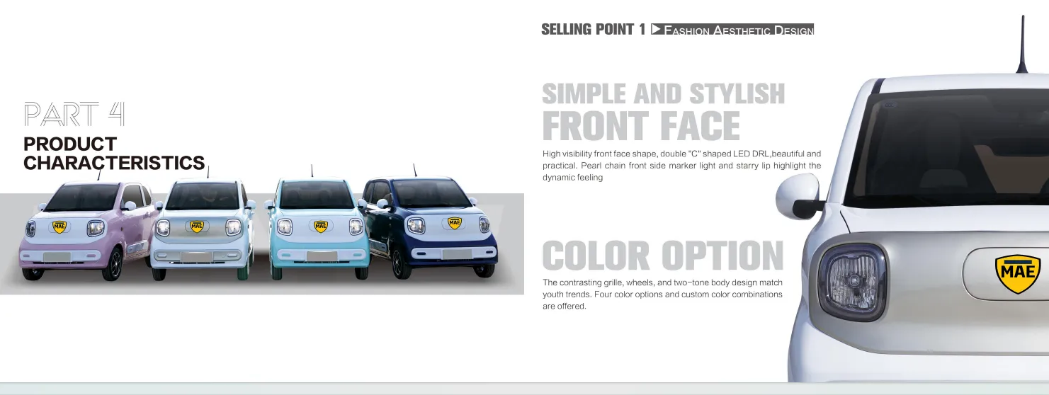 MAE는 남미에서 BENTU를 출시하게 된 것을 자랑스럽게 생각합니다. 이 소형 전기 자동차는 트렌디하고 컴팩트한 디자인과 안정적인 성능, 낮은 운영 비용을 결합하여 도시의 일상 통근에 이상적입니다. 실용적인 4인승 실내, 효율적인 전기 파워트레인, 밝은 색상 선택을 특징으로 하는 이 차량은 안전하고 친환경적이며 합리적인 가격의 도시 이동성을 제공합니다. BENTU의 품질과 MAE의 현지 서비스를 바탕으로 남미 도시에 새로운 스마트 드라이빙 경험 제공