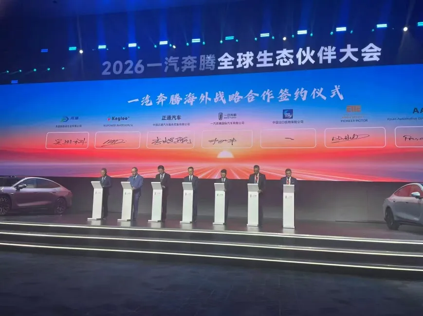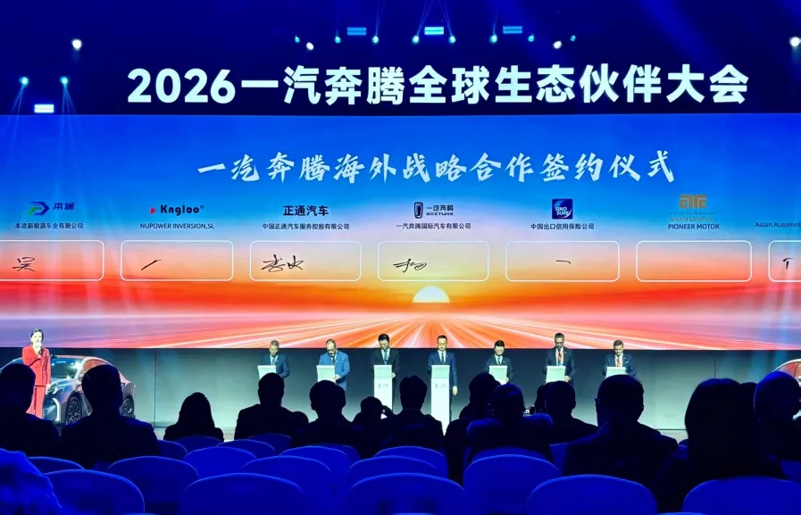 2026년 2월 4일, 길림성 장춘시에서 FAW Bestune 글로벌 에코 파트너 컨퍼런스가 개최되었습니다. 핵심 해외 전략 파트너 중 하나인 Mr. Wu 회장은산동벤투신에너지자동차유한회사, 회사를 대신하여 FAW Bestune과 함께 유럽 표준을 준수하는 차량에 대한 수리 및 판매 계약에 참석하고 서명하도록 초대되었습니다. 이는 Shandong Bentu New Energy Vehicle Co., Ltd.가 유럽 시장을 확장하고 국제 발전의 새로운 여정을 시작하는 데 중요한 단계입니다.